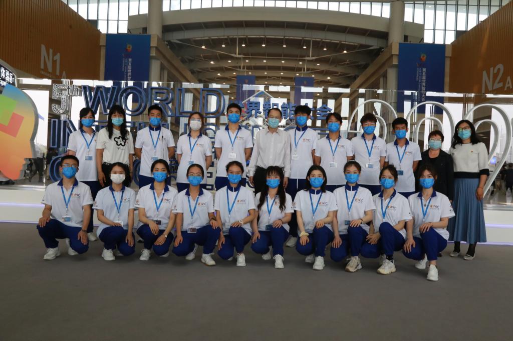 本次世界智能大会,我校共派出大学生志愿者166名,分别在主论坛、双边会谈、酒店、前广场外围等多个岗位进行志愿服务。