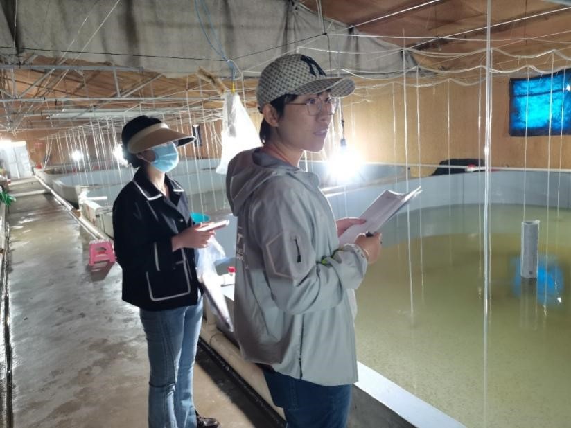 随后,双方赴我校产学研联合体、松江鲈驯养繁育示范基地——天津市晟淼水产养殖有限公司,参观了松江鲈繁育车间、工厂化循环水养殖车间等,对松江鲈生长发育情况进行测量分析;针对松江鲈受精卵孵化率低问题进行探讨;对松江鲈苗种繁育过程中生物饵料的培养、饵料的转换、育苗池清理、水质调控等技术进行指导,分析了后期松江鲈养殖注意事项,并将采集完的实验样品带回学校进行进一步分析研究。