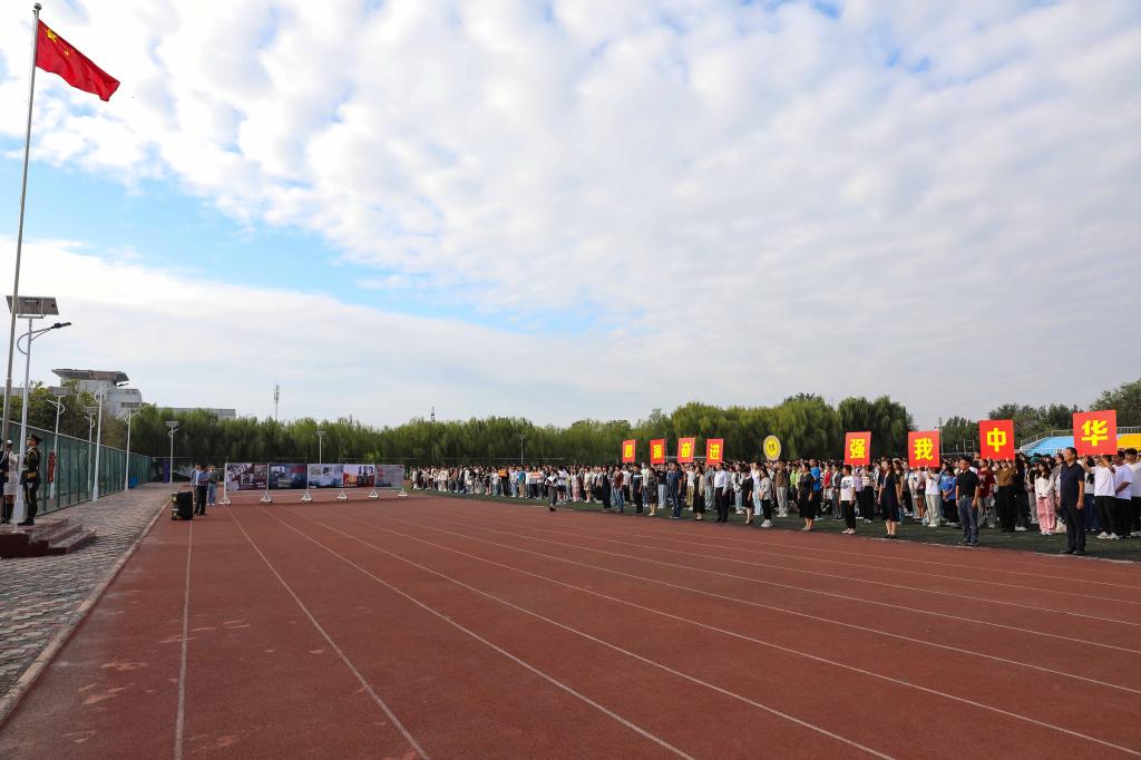 “全体都有,向前看齐。升国旗,奏唱国歌。”上午8时许,伴随着一声号令,全场响起《义勇军进行曲》,英姿飒爽的升旗手高高扬起国旗,鲜艳的五星红旗冉冉升起,全体师生肃立行注目礼。