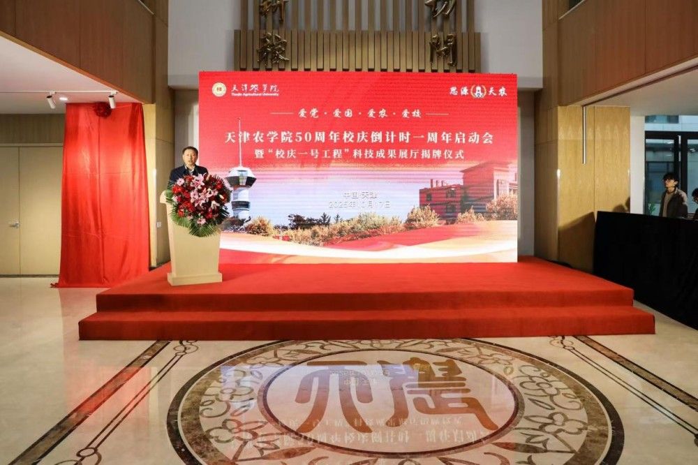 金危危在讲话中指出,2026年是我校建校50周年,在学校50周年校庆倒计时一周年之际举办今天的活动意义重大。科技成果展厅的建成是对我校建校50年来优秀科研成果的一次全面梳理和推介,是面向社会集中展示“天农”宝贵财富的重要窗口和平台。展厅内陈列的每一章文字、每一组数据、每一件实物、每一幅图片、每一段影像,都生动诠释了天农人“把论文写在大地上”的实践理念。希望全校师生以此次活动为契机,进一步发扬天农精神,勇攀科技高峰,共同携手将我校打造成为区域农业科创高地。