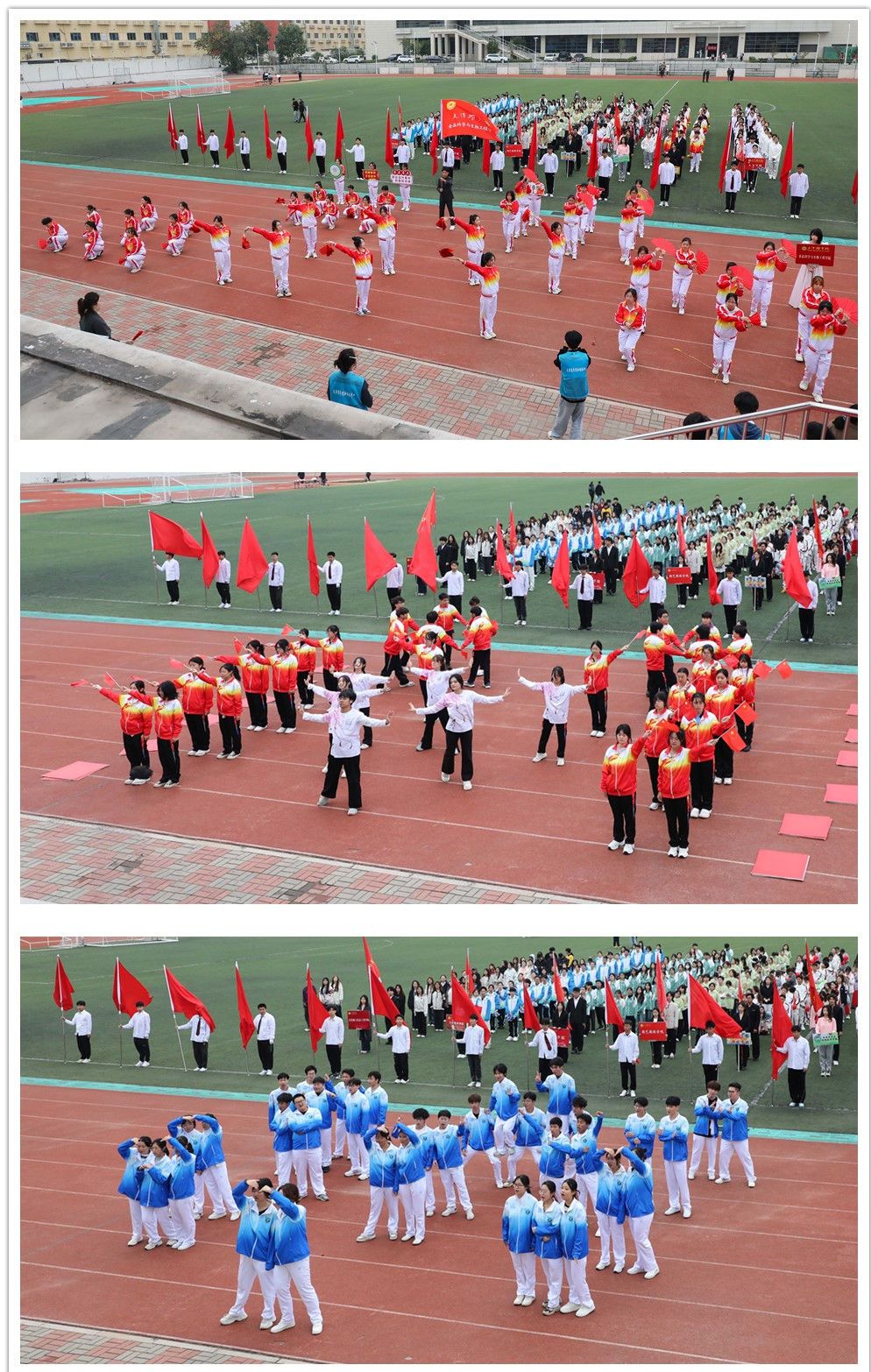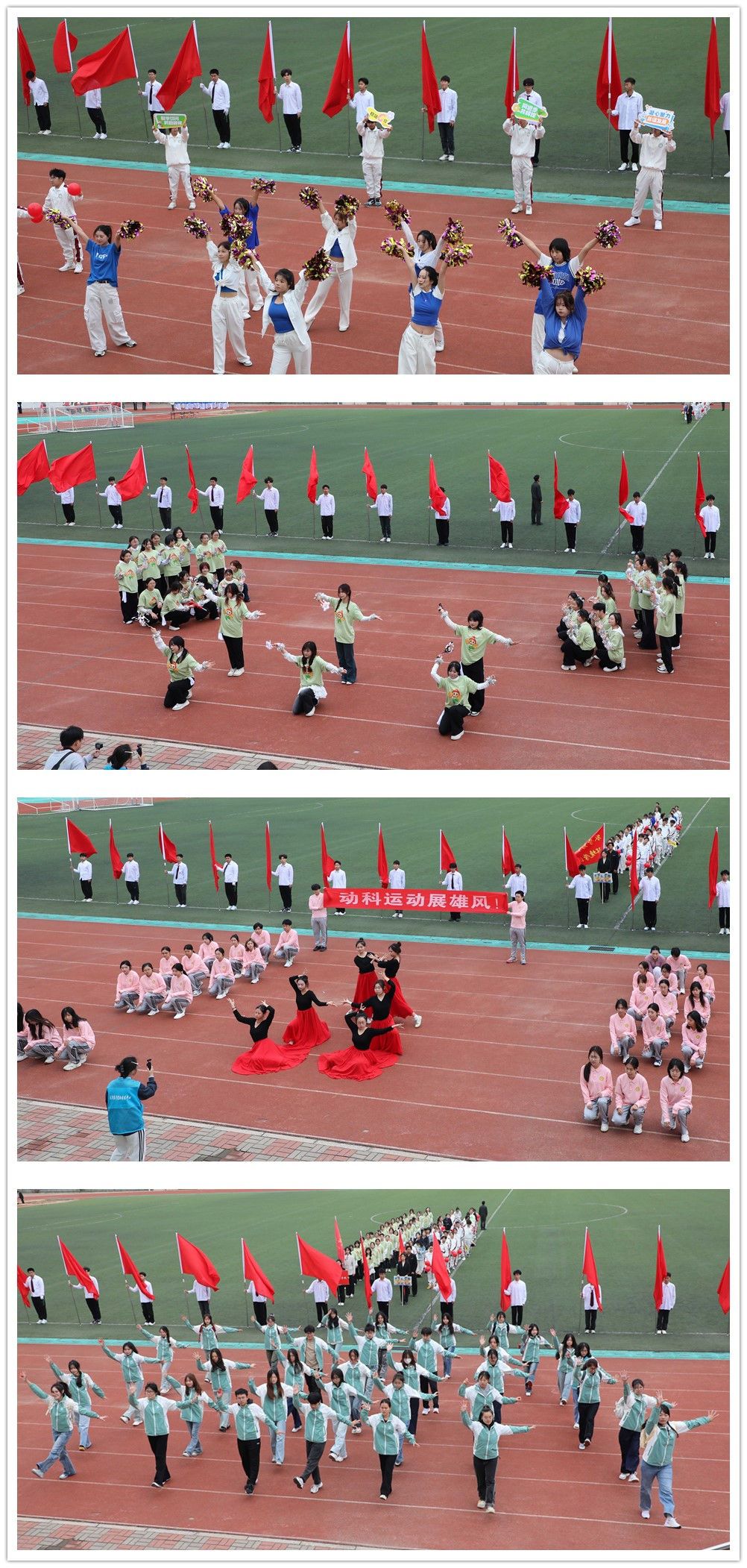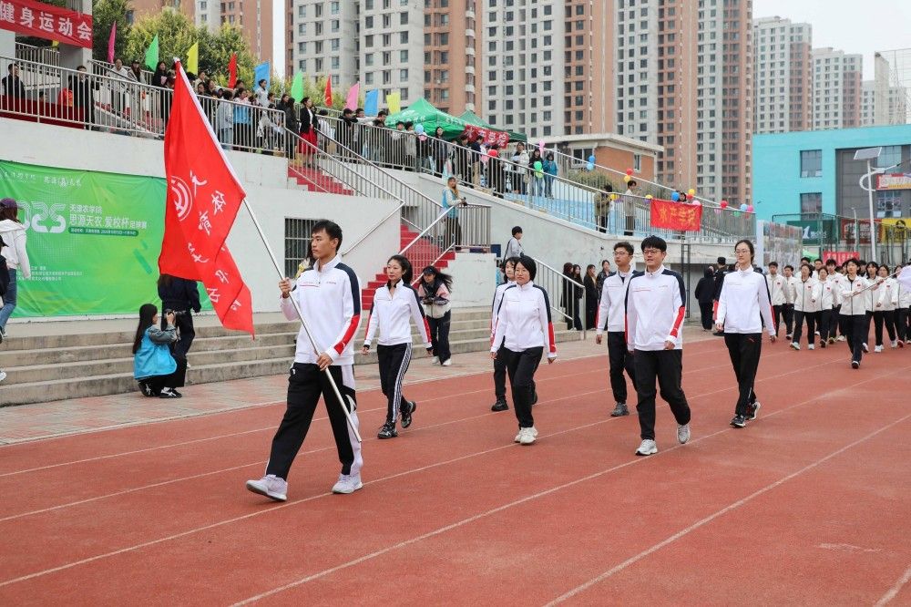 由全校各学院学生、裁判员代表和校田径运动队队员组成的方阵依次入场,他们精神昂扬、步伐铿锵,充满学科特色的风采展示,彰显了天农师生思源奋进的精神面貌。