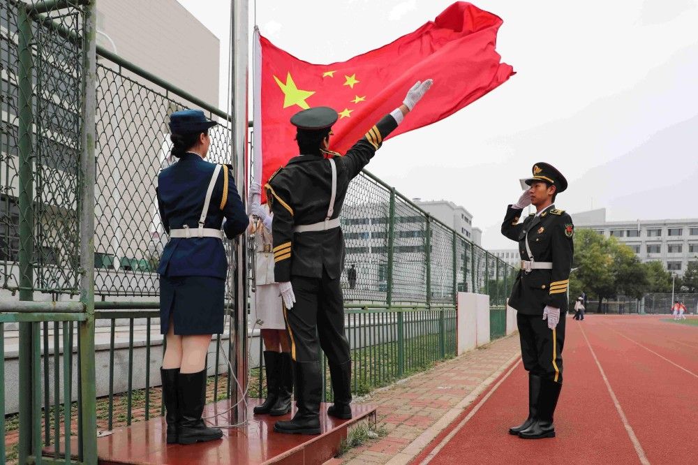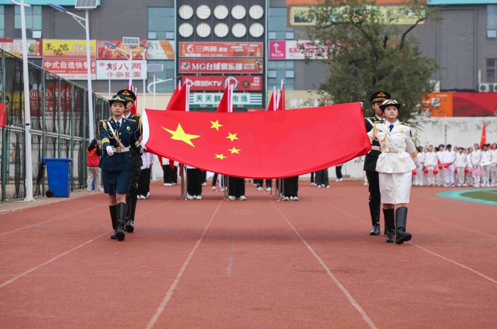在庄严雄壮的国歌声中,鲜艳夺目的五星红旗冉冉升起,我校第四十届秋季田径运动会暨第二十届全民健身运动会拉开序幕。