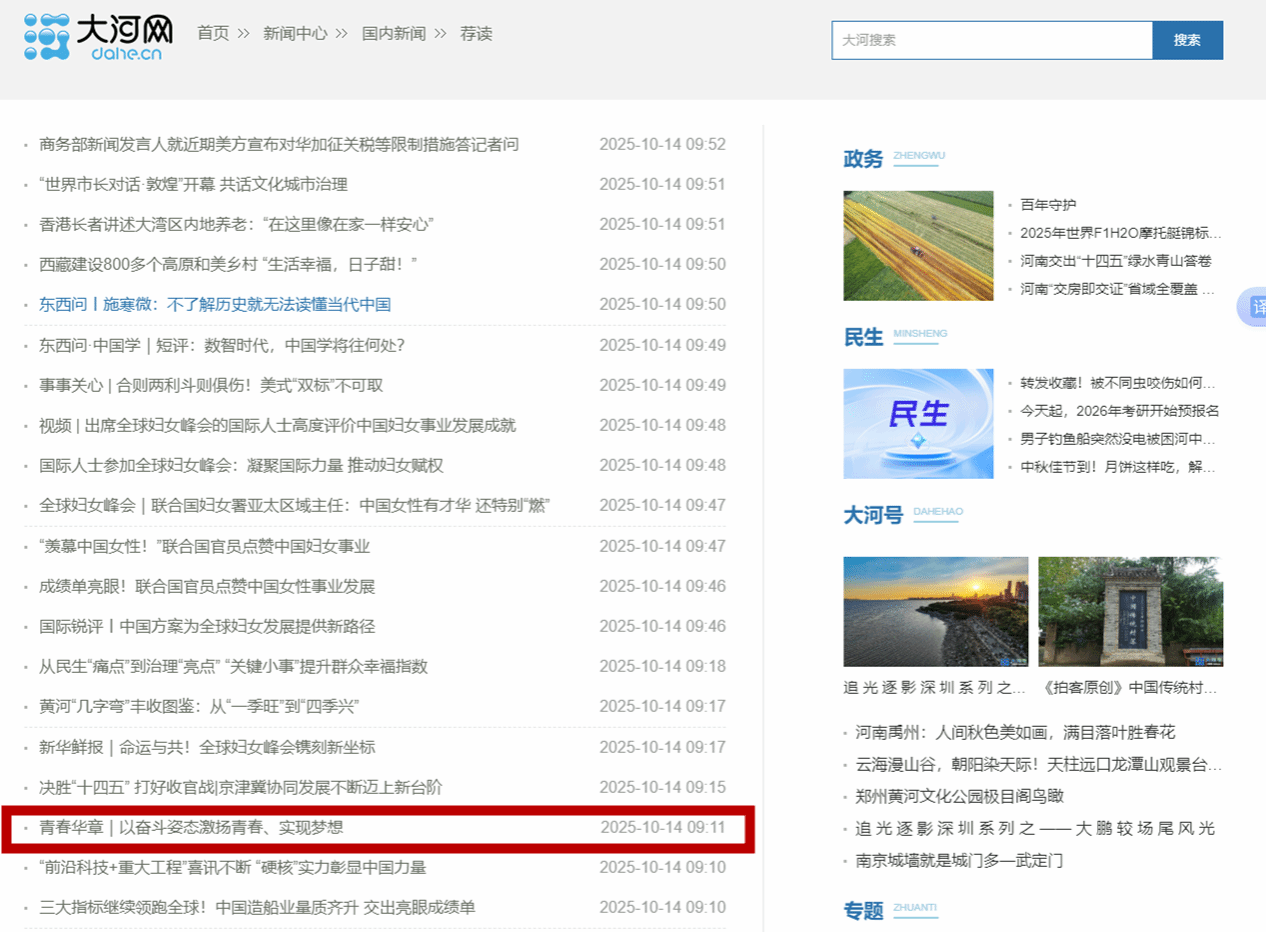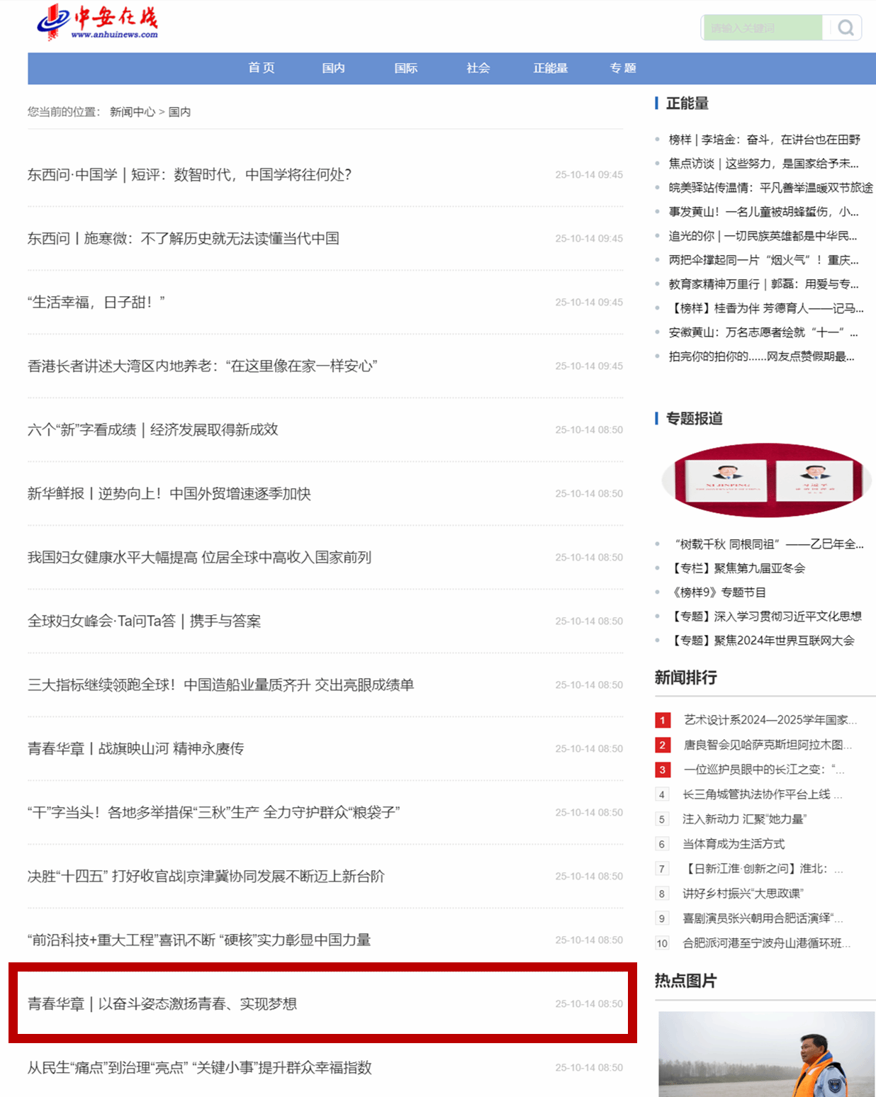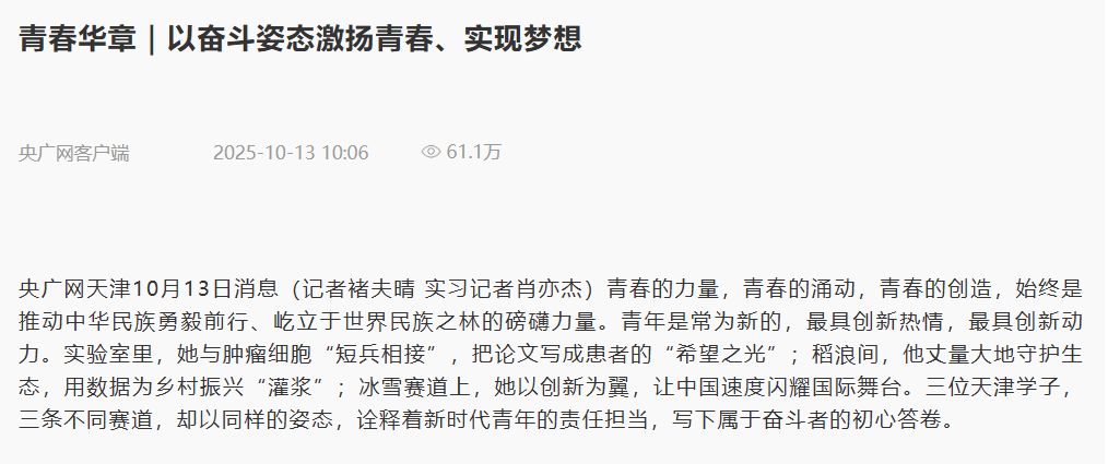 在即将迎来天农建校50周年之际,学校宣传工作始终聚焦强农兴农使命,紧扣学校办学特色,围绕中心、服务大局、主动作为,借助媒体平台影响力向全社会传递天农声音,这是继今年7月份“我校粮食安全主题大中小思政课一体化实践育人活动新闻”被全网置顶推送之后,又一次学校有关报道被全网置顶推送,增强了学校的社会影响力,进一步凝聚起天农人思源奋进的精神力量,为迎接建校50周年营造浓厚氛围。(研究生院、宣传部供稿;文字:李飞跃 赵斌;编辑:张倩;审校:田健 赵斌)