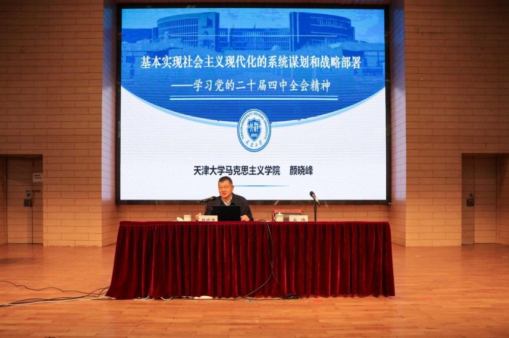 近日,我校特邀天津大学马克思主义学院院长颜晓峰教授来校,作题为《基本实现社会主义现代化的系统谋划和战略部署—学习党的二十届四中全会精神》的专题辅导报告。报告会在敏学楼礼堂举行。校党委书记李鑫,校党委常委、副校长张继东,校党委常委、驻校纪检监察组组长曹东宁出席会议。会议由校党委副书记宋涛主持。
