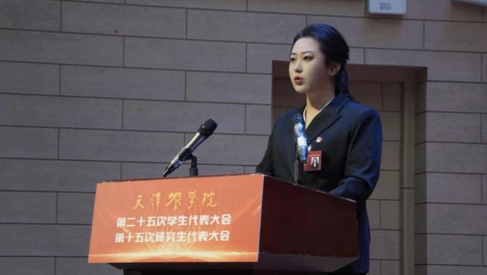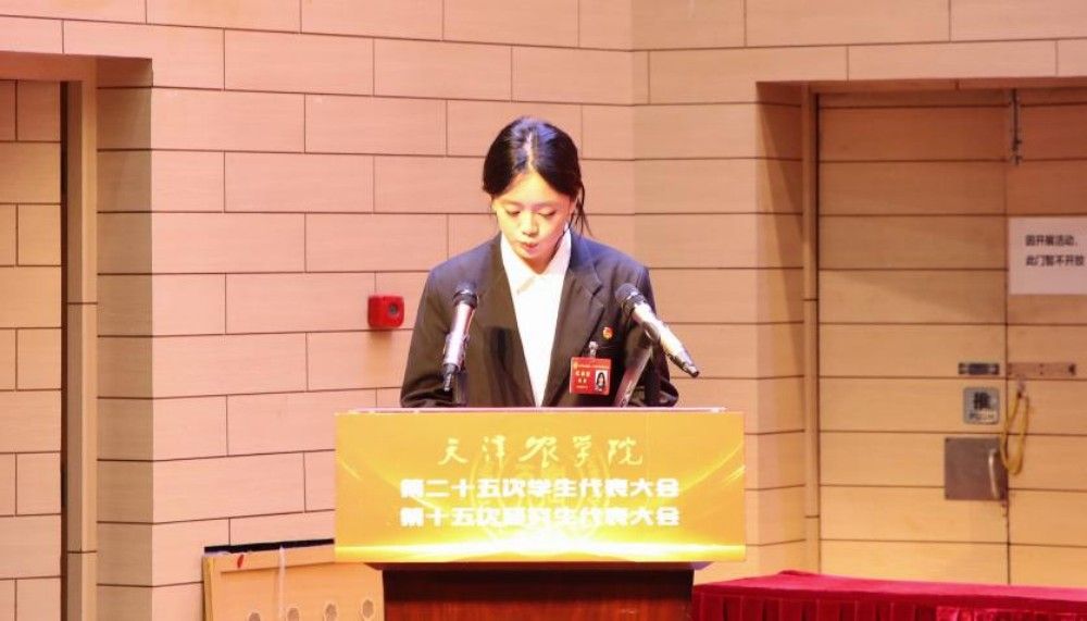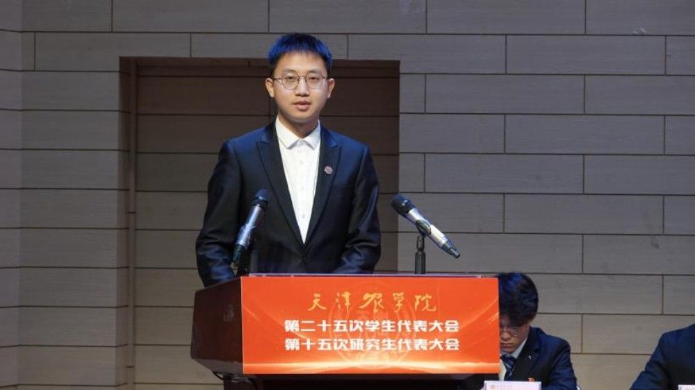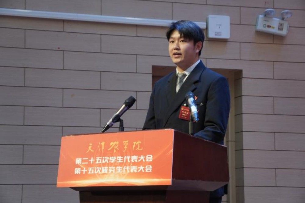 第二十四届校学生会执行主席潘佳宝、第十四届校研究生会执行主席孔垚分别代表天津农学院第二十四届学生委员会、第十四届研究生委员会作工作报告。