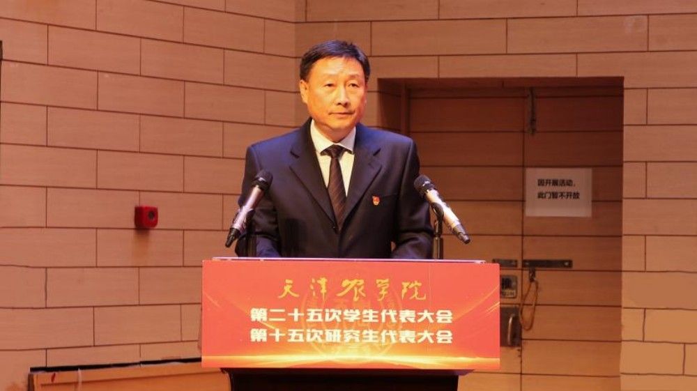 李堃代表市学联对学校第二十五次学生代表大会、第十五次研究生代表大会的召开表示热烈祝贺,充分肯定天津农学院学生会、研究生会过去一年的工作成果。他表示,全校各级学生会组织需鲜明彰显政治本色,扎实当好党联系青年学生的桥梁纽带,继续坚守服务初心,持续深化改革创新,着力打造先进服务型学生组织。在强国建设、民族复兴的壮阔征程中,学生会组织要引领广大学生筑牢理想信念之基,厚植家国赤子情怀,勇担时代赋予的历史使命,以青春之力挺膺担当,奋力书写中国式现代化建设的青春答卷。