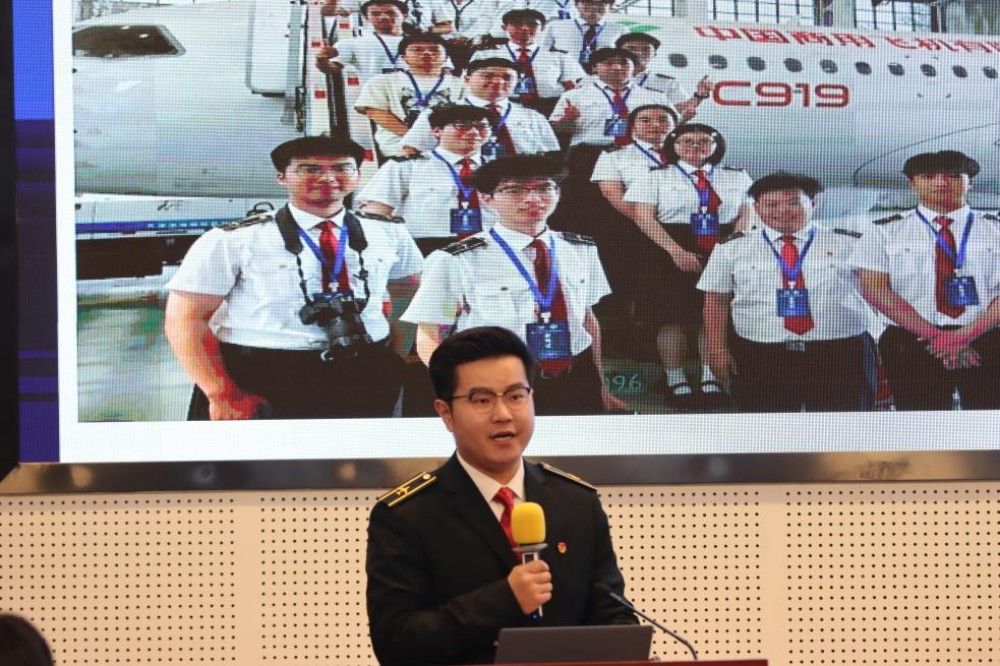 天津市学联宣讲团成员、中国民航大学学生石博晗以《从“跟跑”到“领跑”——谈高水平科技自立自强》为题作分享,他结合民航领域科技创新的发展历程与典型案例,深入剖析我国科技发展从追赶到引领的跨越之路,着重强调青年一代肩负的时代重任,呼吁广大青年投身科技强国建设浪潮,以青春之力助推高水平科技自立自强。