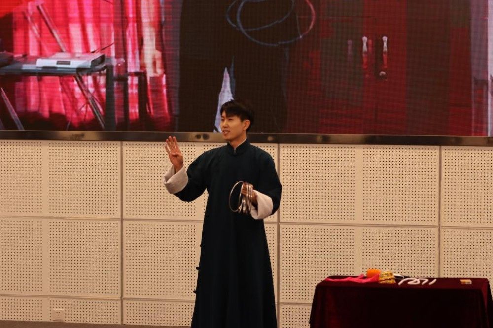 天津市青年讲师团成员、天津市青联委员、静海区唐官屯镇大张屯村党支部副书记王艺达,以《守古彩技艺 传非遗薪火》为题作分享,聚焦国家非物质文化遗产“戏法”的传承困境与破局之路,讲述自己投身非遗保护与推广的实践历程,生动展现新时代青年守护传统文化根脉的奉献精神与责任担当。