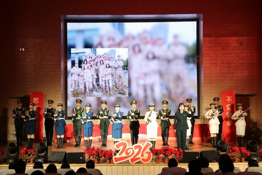 2025年天津市大中小学“爱我国防”演讲比赛一等奖获得者、退伍大学生郑颖鑫同学激情演讲《以赤子之心 铸钢铁长城》,她以家庭三代从军的故事讲述军魂传承,校国旗护卫队、预储连同学们的展示交相辉映,尽显新时代青年丹心报国、守护家国的青春担当。