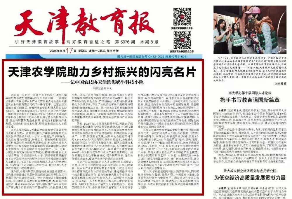 今年,学校“植物学与动物学”学科(Plant & Animal Science)、“农业科学”学科(Agricultural Sciences)两个学科进入ESI全球排名前1%,这是学校强化学科建设顶层设计、实现创新发展的重要突破,标志着我校学科实力和学术影响力进一步提升。我校3门课程获批第三批国家级一流本科课程;新增本科专业1个,立项建设5个微专业;高校教师教学创新大赛实现国奖历史性突破,经济管理学院李彩霞教授团队荣获第五届全国高校教师教学创新大赛三等奖,我校获得优秀组织奖。同时,不断加大科技小院建设力度,我校天津大港贝类科技小院凭借其创新性的贝类低碳养殖技术、联农带农模式及产教融合实践,荣获“优秀科技小院工作案例”称号。新华社客户端报道了我校园艺园林学院研究生、天津武清小浆果科技小院成员们扎根田园的事迹。《天津教育报》头版头条对我校滨海奶牛科技小院进行了报道。
