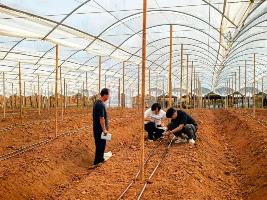 在昌江黎族自治县新建的妮娜皇后葡萄园,团队将科技服务延伸至产业起步阶段。师生们运用专业设备,对园区土壤酸碱度、电导率、温度以及空气湿度、光照强度等关键环境指标进行了系统测定,并结合海南当地独特的气候特点进行综合分析。田淑芬研究员在仔细勘查苗木长势后讲到:“定植初期是葡萄成活与未来丰产的关键阶段,必须依据实时监测数据,动态、精细地调控园区湿度与土壤环境。”围绕检测中发现的具体问题,团队现场“开方”,提供了从科学栽植到精准养护的一体化管理方案,助力这座新葡萄园实现高起点、科学化、稳健化发展,为当地乡村特色产业注入科技动能。