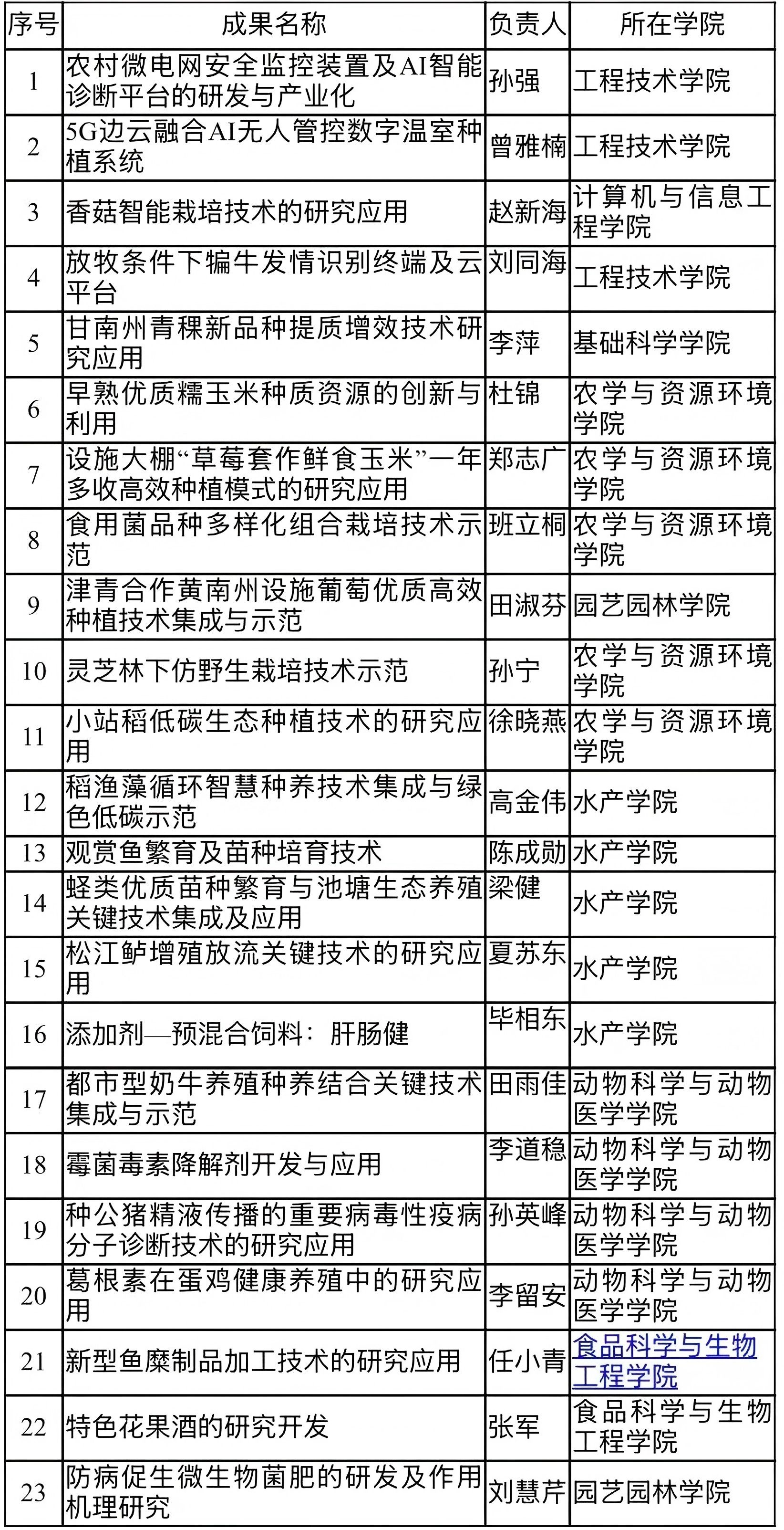 我校入选天津市农业科技特派员优秀成果(2025)汇总表