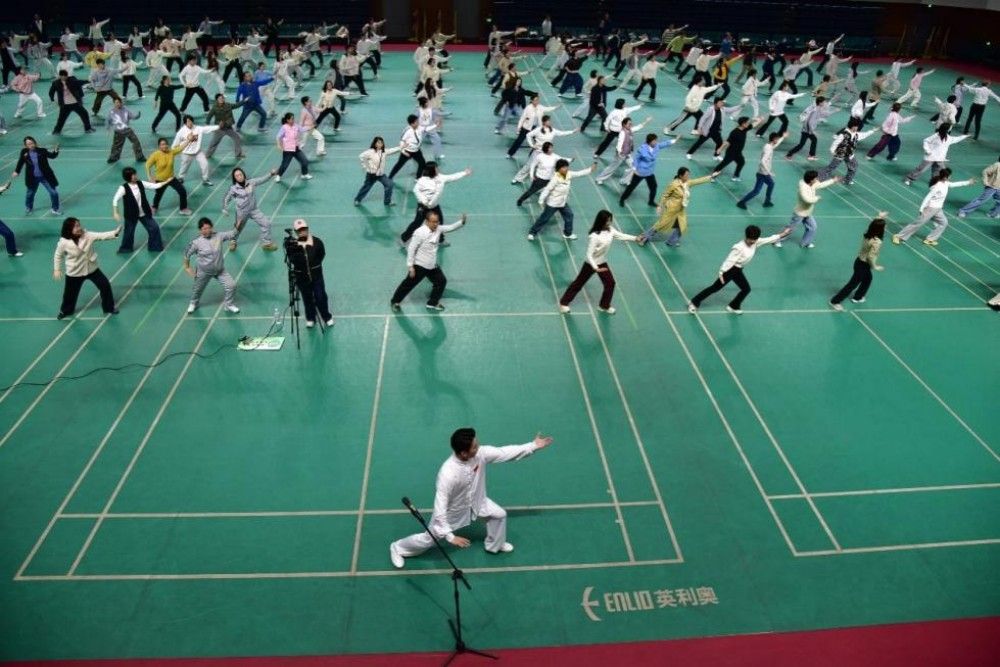 4月3日,我校太极养生课开班仪式在体育馆举行。校党委常委、副校长张民出席仪式并讲话,学校教职工代表参加活动。
