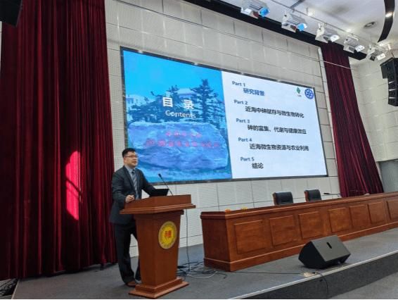 报告中,曾祥峰研究员系统讲解了三大核心内容,并分享团队最新研究成果:一是近海砷赋存特征与微生物转化机制,首次发现海洋沉积物中反硝化砷厌氧氧化等新生物地球化学过程,明确藻源有机砷可通过微生物厌氧降解转化为无机砷;二是砷的富集代谢与健康效应,在盐藻、硅藻中发现可降低砷吸收的新砷运输蛋白,同时阐明海产有机砷暴露会引发妊娠疾病、影响子代发育的健康风险;三是海洋微生物资源的高值应用,指出砷代谢耐受微生物可作为近海生态修复与健康养殖的新种质资源,为农业绿色低碳发展提供新路径。