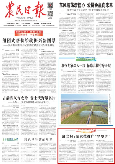 《农民日报》头版以《班立桐:做农技推广“守望者”》为题报道全国政协委员、我校班立桐教授的履职风采