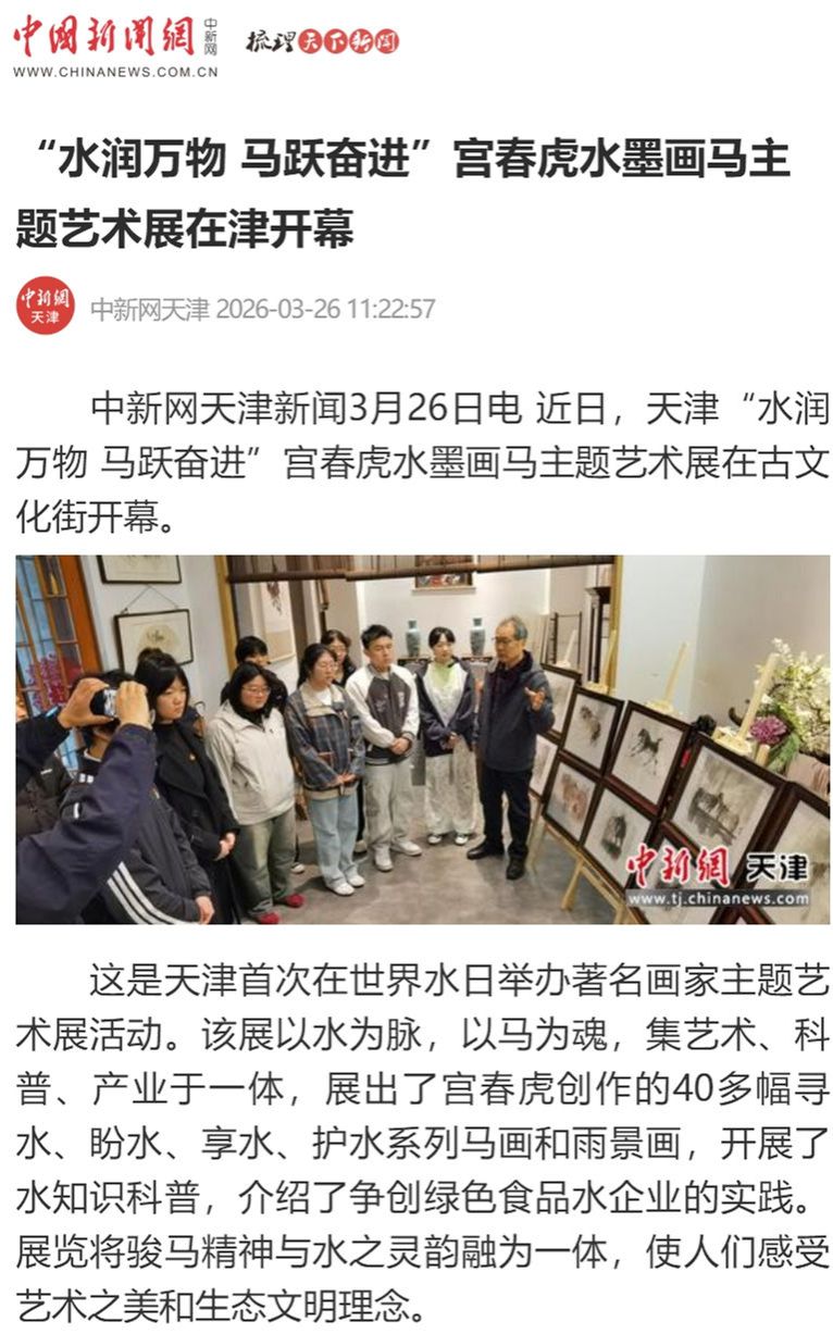 多家媒体报道我校协办的“水润万物 马跃奋进——宫春虎水墨画马主题艺术展”